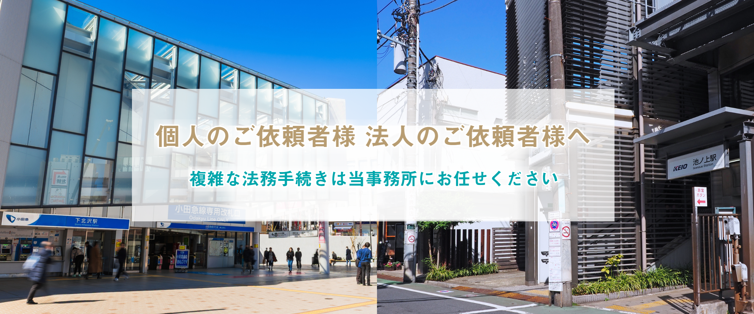 当事務所は、京王井の頭線池ノ上駅北口から徒歩約1分、下北沢駅東口から徒歩約9分ほどの場所にございます。